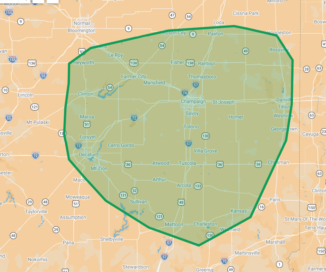 We Deliver and Install sod all over central Illinois though. Often if its within a 75 minute drive we can make it work. We work in Monticello, Danville, Savoy, Rantoul, Fisher, Paxton, Lake Iroquois, Sullivan, Mattoon, Charleston, Clinton, Decatur, Mt. Zion, Tuscola, Catlin, Sidell, Arcola, Farmer City, Mansfield, and Urbana! Pretty much all over and in between.